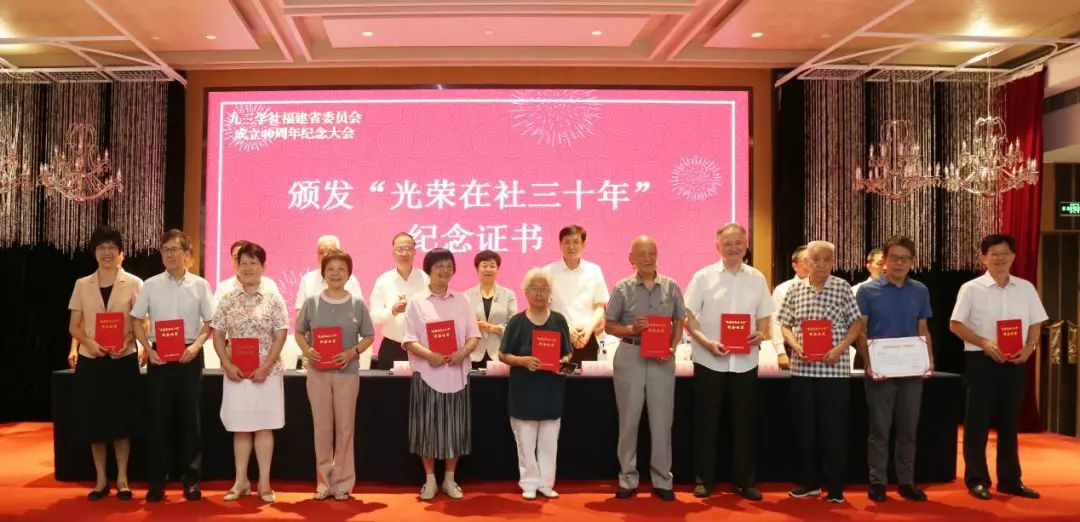 会上,刘晓梅等领导为社龄超过三十年的社员代表颁发“光荣在社三十年”纪念证书,以表彰他们为九三学社发展、福建建设作出的积极贡献。并举办文艺演出,在榕文艺界社员倾情演绎,献礼社省委会成立40周年。