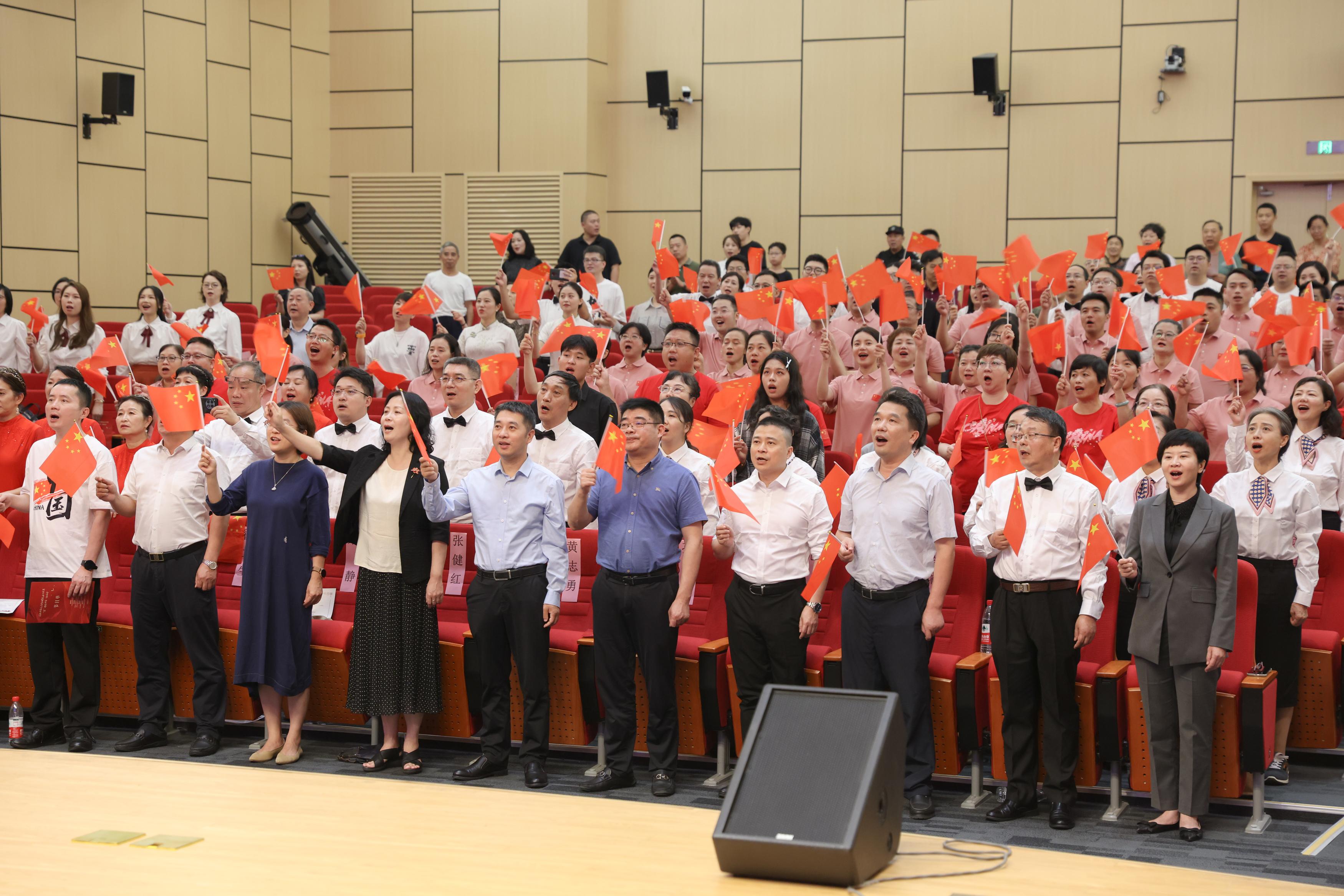图为全场人员合唱《歌唱祖国》,用歌声表达对祖国的热爱和对未来的美好憧憬。(吴晓庆 摄影报道)
