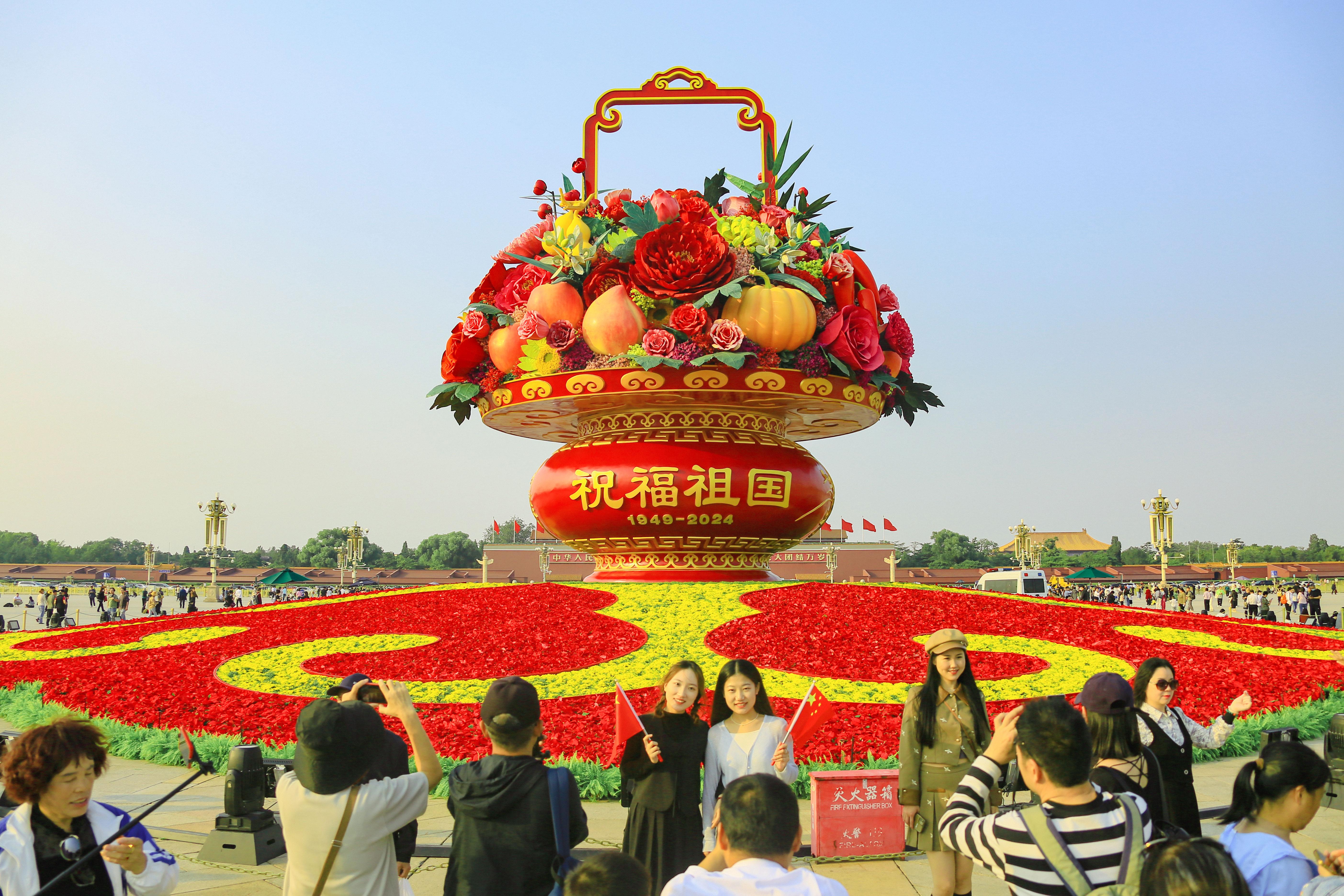 今年是中华人民共和国成立75周年。北京天安门广场、长安街沿线,一组组花坛已相继摆放完毕,烘托出热烈祥和的喜庆氛围。