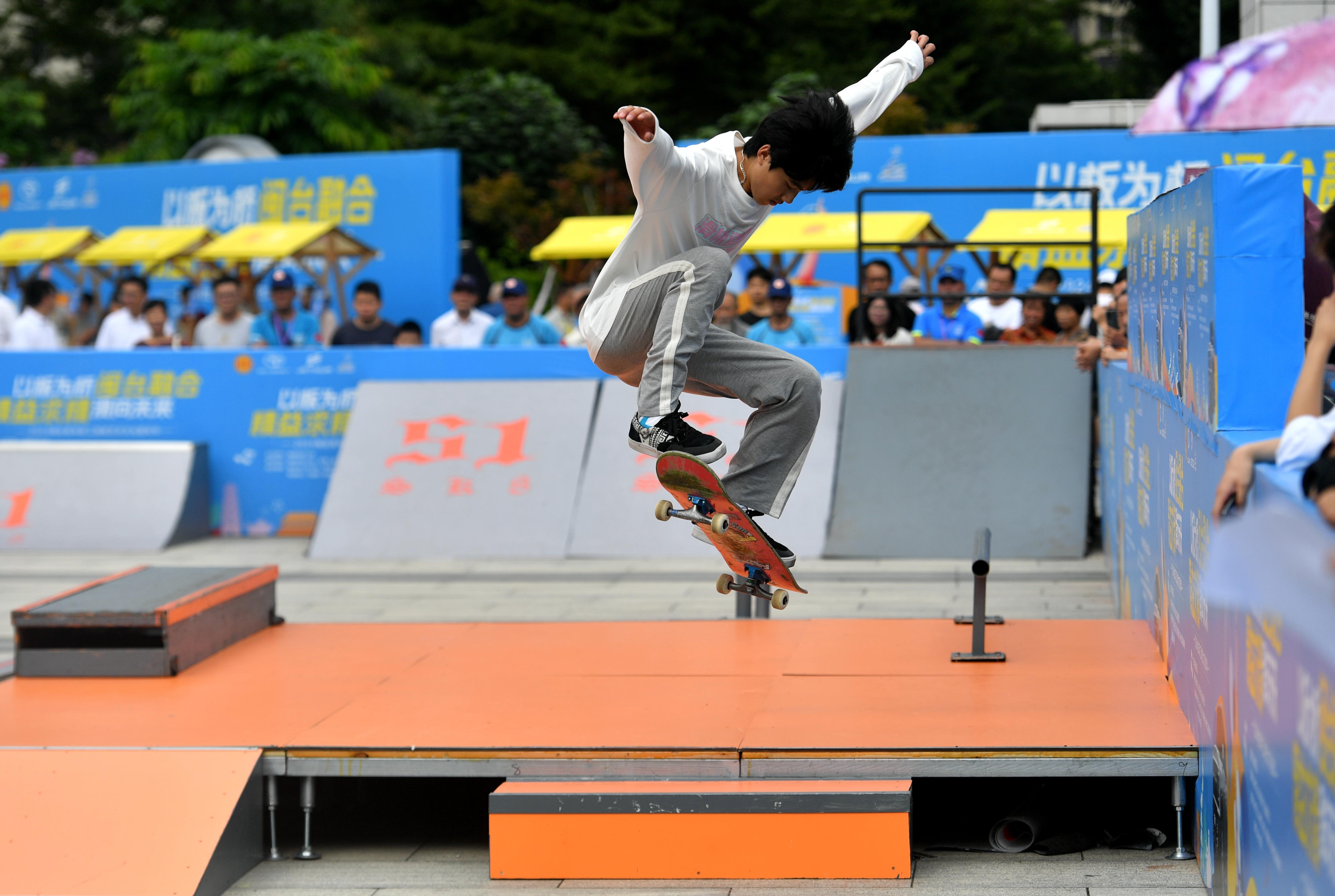 10月13日,2024闽台青年职工滑板文化艺术嘉年华在福州开幕。来自海峡两岸300多名滑板爱好者切磋技艺、交流心得,用他们独特的方式为现场观众呈现了精彩刺激的表演。