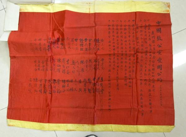 1951年4月11日,中国致公党签订的《爱国公约》红锦旗。(图源:致公党中央档案室)