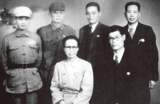 参加中国人民政治协商会议第一届全体会议的台盟代表。左起:田富达、杨克煌、谢雪红、李伟光、王天强、林铿生(候补)中国民主党派历史陈列馆供图