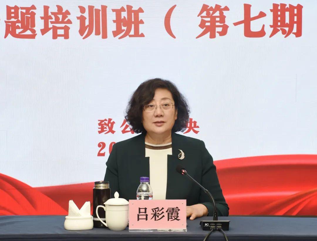 吕彩霞指出,致公党中央高度重视高校和科研院所党员的思想教育,从2021年开始连续四年对致公党高校和科研院所基层组织负责人和党员进行培训。吕彩霞强调,要提高政治站位,毫不动摇地坚持中国共产党的领导,努力做到在中国共产党领导下多党合作有新气象、思想共识有新提高、履职尽责有新作为、参政党有新面貌。中共中央统筹中华民族伟大复兴战略全局和世界百年未有之大变局,推动我国经济发展取得历史性成就,致公党要唱响中国经济光明论,讲好中国故事,做中国共产党的好参谋、好帮手、好同事。吕彩霞要求参训学员要珍惜此次学习机会,端正学习态度,带着问题学,带着责任学,以学促干,提高履职能力和水平,把所学所悟转化为参政履职的成效,以优异成绩迎接2025年致公党成立100周年。