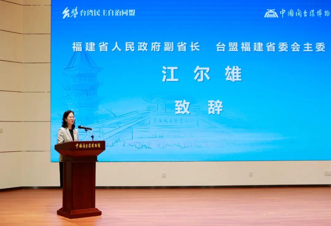 全国政协常委、福建省人民政府副省长、台盟福建省委会主委江尔雄代表福建省人民政府、台盟福建省委会,对台盟中央给予福建的关心表示衷心的感谢。她表示,习近平总书记在福建考察时要求我们在提升文化影响力、展示福建新形象上久久为功。我们要牢记嘱托,立足福建独特的文化资源优势,建好用好中国闽台缘博物馆等“台盟爱国主义教育基地”,结合台盟“两岸交流促进年”工作主题,继续办好台盟中央两岸融合发展交流营系列活动。通过寻根谒祖、族谱对接、亲情联谊等方式,不断增进台胞的民族认同、文化认同、国家认同。希望中国闽台缘博物馆以揭牌仪式为契机,进一步依托祖地文化资源,保护利用好涉台文物,为增进两岸同胞心灵契合、助力两岸融合发展作出新贡献。