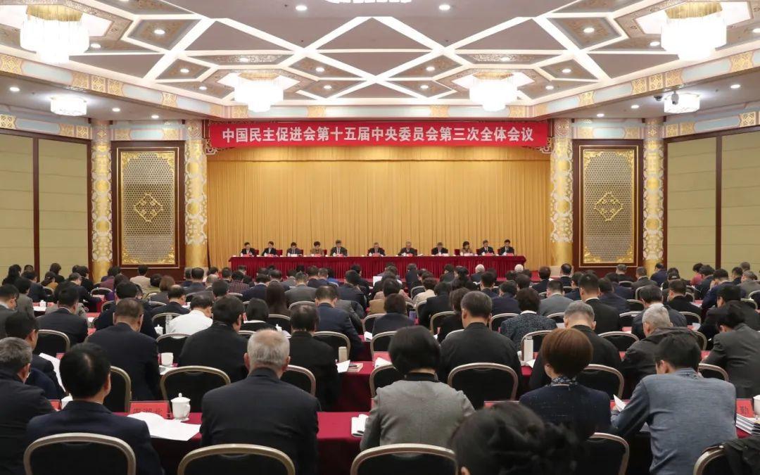 12月11日上午,中国民主促进会第十五届中央委员会第三次全体会议在京开幕。会议的主要内容是:学习习近平新时代中国特色社会主义思想和中共二十届三中全会精神,听取和审议中国民主促进会第十五届中央常务委员会工作报告(草案)、中国民主促进会第十五届中央委员会内部监督委员会工作报告(草案),审议中国民主促进会第十五届中央委员会第三次全体会议决议(草案)。全国人大常委会副委员长、民进中央主席蔡达峰代表民进第十五届中央常务委员会作工作报告,全国政协副主席、民进中央常务副主席朱永新主持开幕会。