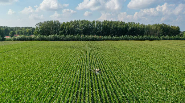 2024年8月8日,在吉林省梨树县孤家子镇,无人机为作物施肥(无人机照片)。新华社记者 张楠 摄