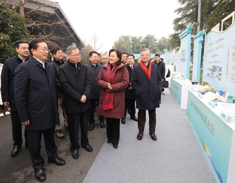 开幕活动前,与会领导和嘉宾共同巡展,与参展的龙头企业及重点医疗机构负责人互动交流,了解湖北中医药领域科技创新、成果转化应用、特色品牌和产品培育等情况。