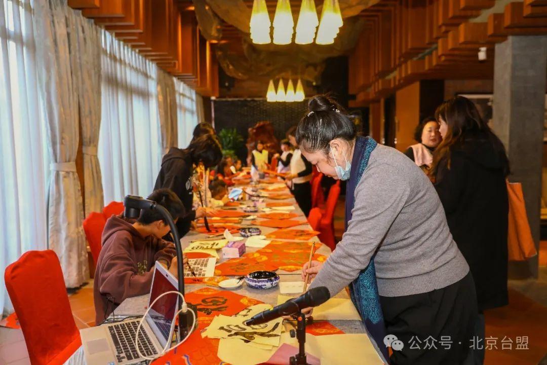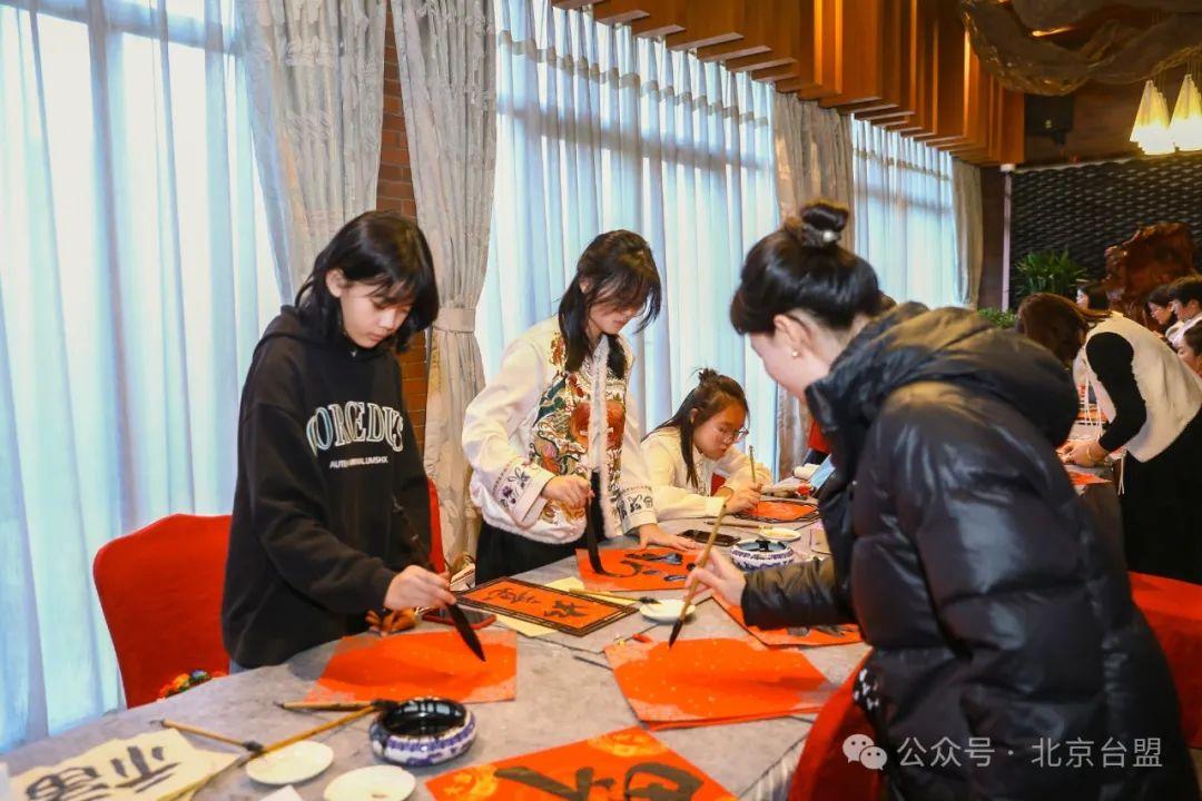 随后的文化互动环节中,猜谜语、写对联等体验活动和观影活动都得到了大家踊跃的参与。盟员刘文瑾、李猛一家,盟员潘迎、李力等书法老师带着大家一起书写祝福。大家一边互动、一边分享着家乡的春节习俗,欢声笑语不断,现场气氛十分融洽。相信在新的一年里,两岸同胞将继续携手共进,共同书写两岸关系更加美好的新篇章。