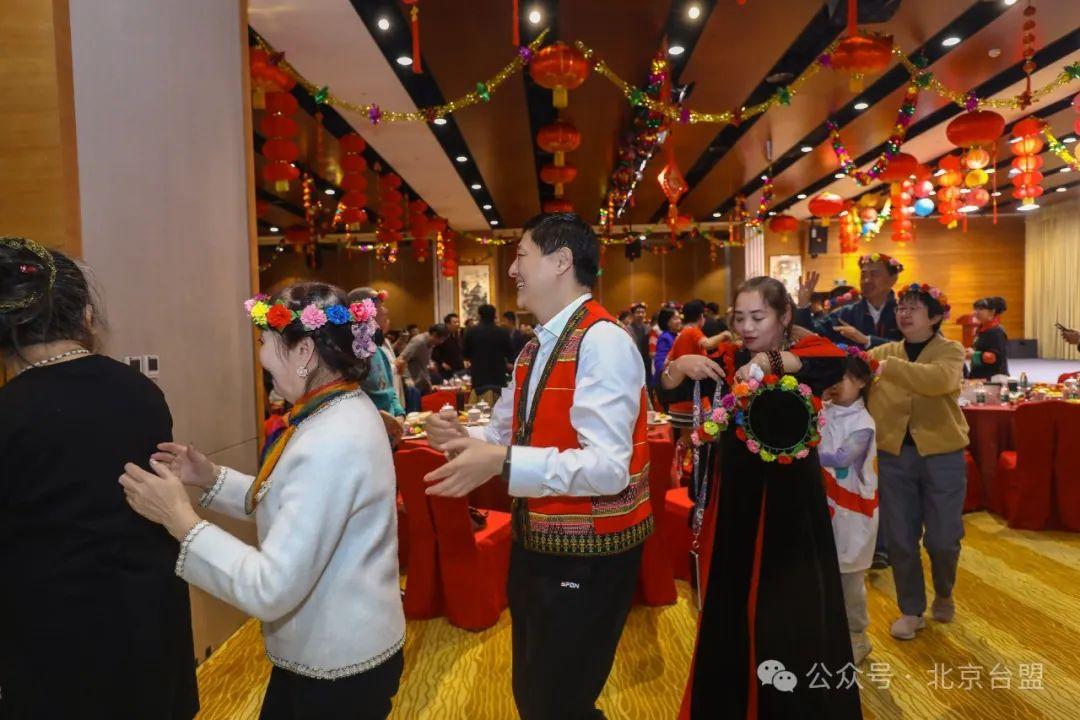 新春联谊活动节目丰富,精彩纷呈。活动分文艺汇演和文化互动两个部分。在京台胞合唱团,电音三太子,著名相声演员苏维胜、姬天语,小台胞王思瑶,台企协自行车队等表演团队为现场观众带来了具有浓郁台湾特色的节目,展现了独特的文化魅力。全场盟员和台胞在《我们都是一家人》经典又熟悉的旋律中手牵手、心连心,一起跳起了高山族的舞蹈,表达了两岸同胞同根同源、同文同种、是血浓于水的一家人的真情实感。