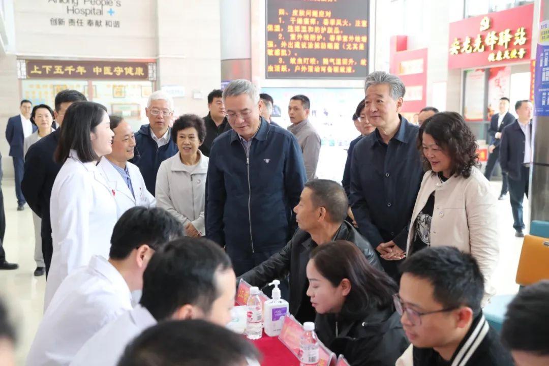 结束在坝盘村的考察后,蔡达峰一行来到安龙县人民医院。在这里,蔡达峰亲切看望了黔进博士名医专家团和民进内蒙古区委会医疗专家秦立梅,考察了民进专家工作室,听取医院建设和民进医疗帮扶工作情况汇报。近年来,在各级党委、政府的关心关注下,在民进中央及内蒙古区委会、贵州省委会等的大力帮助支持下,医院建成了“全国肛肠名专家曹波教授工作室”“内蒙古百草堂秦氏中蒙医秦立梅专家工作室”“云南省阜外心血管病医院王忠明专家工作室”等名医工作室,还与百草堂秦氏中蒙医医院共建了中医不孕不育科、中医肿瘤科,医疗服务能力和水平进一步提升,让更多百姓在家门口就能享受到及时、优质的医疗服务。