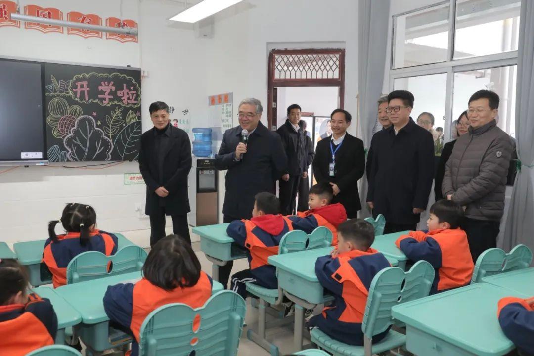 2025年2月18日至19日,民进中央常务副主席朱永新率队赴贵州开展“地域+领域”组团式帮扶毕节工作调研。图为在金沙教育研究院附属第三实验小学调研。