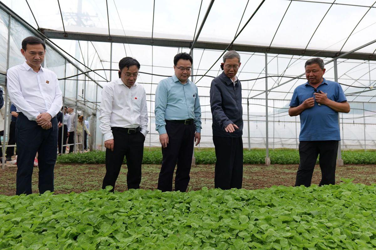 香零山绿色蔬菜种植基地是永州市“粤港澳大湾区”供港蔬菜生产基地。图为调研组走入大棚,查看农作物种植情况。