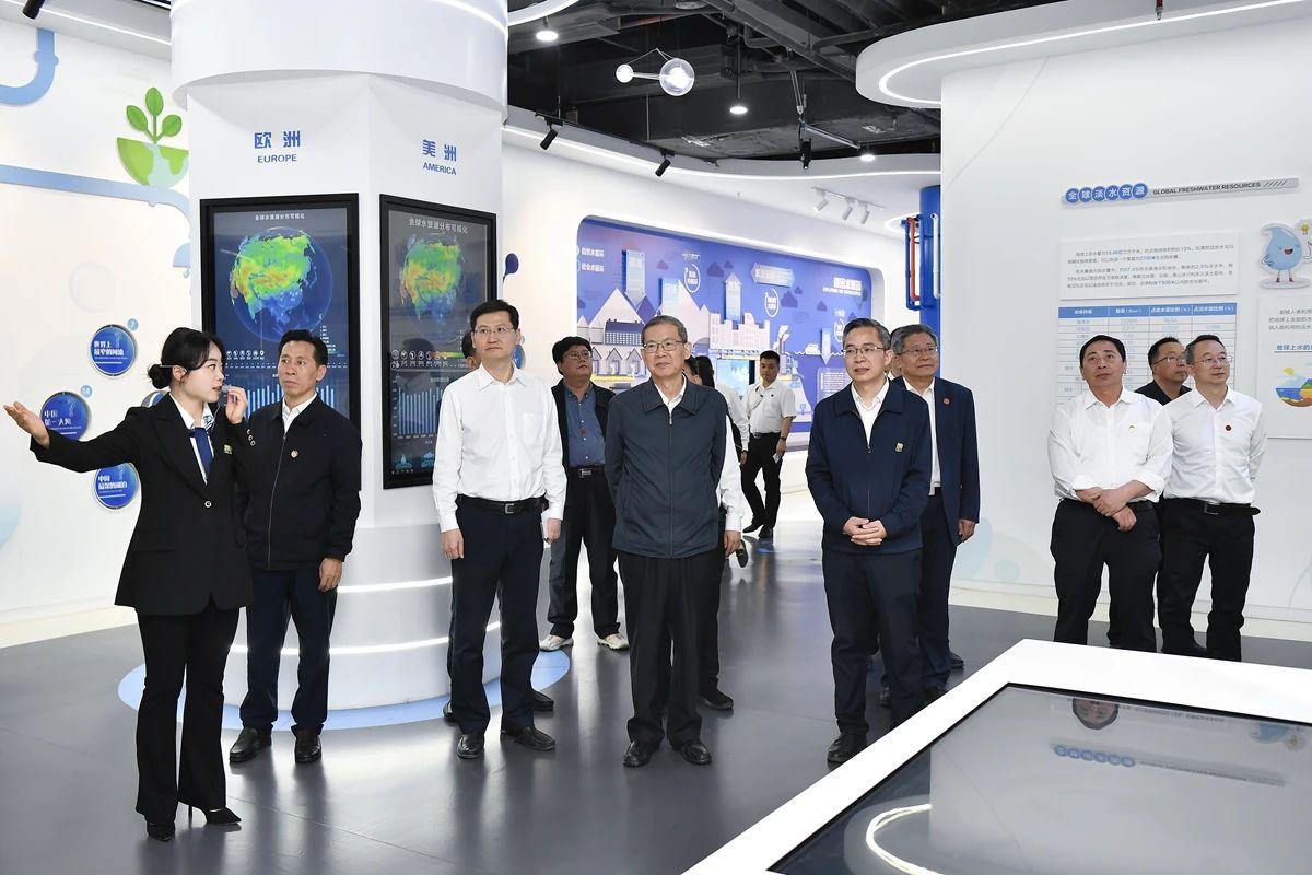 水世界展览馆是“省级节水教育基地”,集中展示郴州水资源可持续利用与绿色发展的成果。图为调研组听取情况介绍。