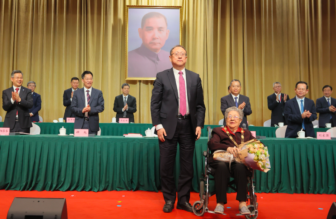嘉宾为四川民革党龄40年以上的老党员颁发纪念章