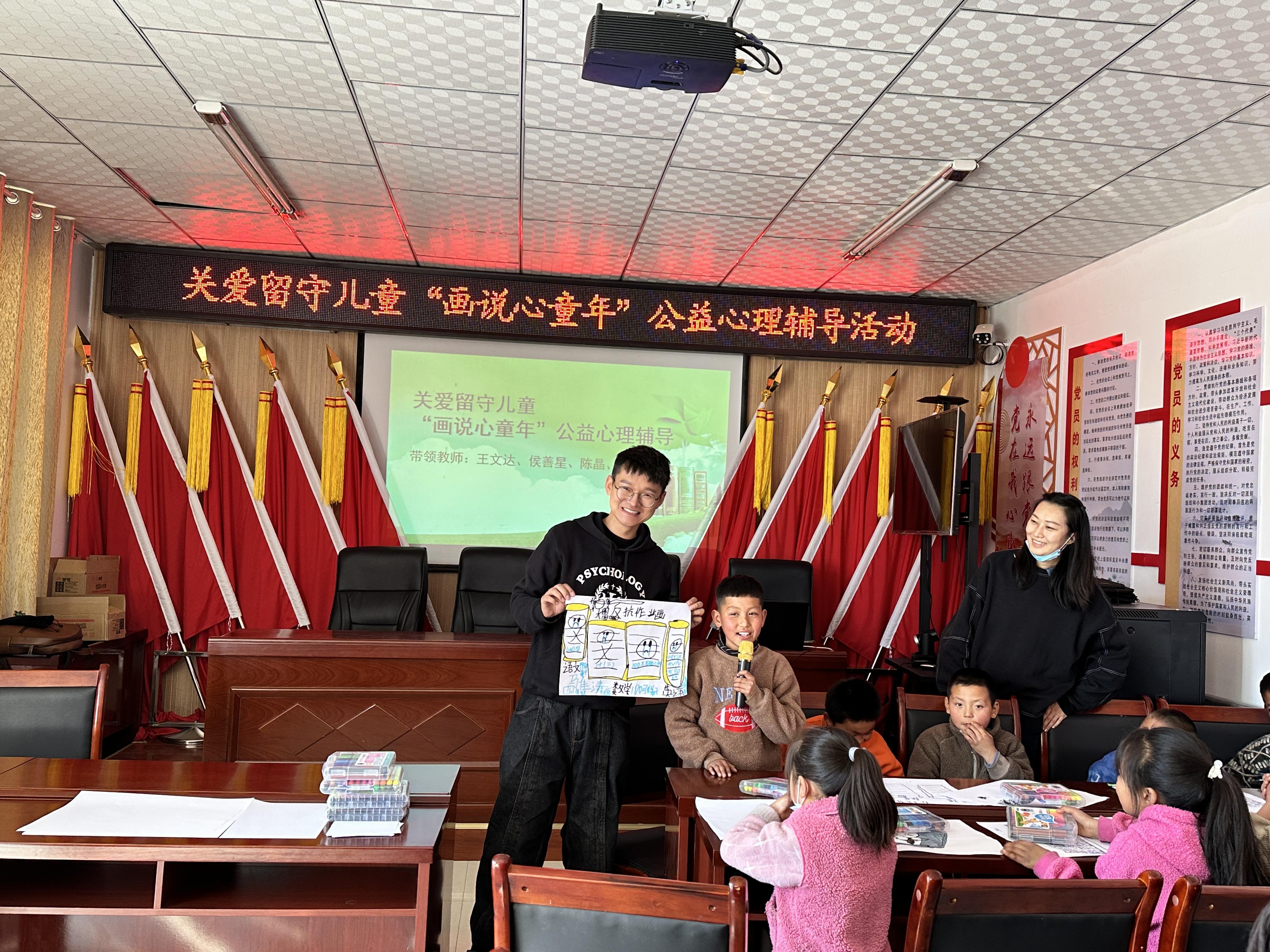 王文达在农村开展关爱留守儿童公益心理辅导活动。