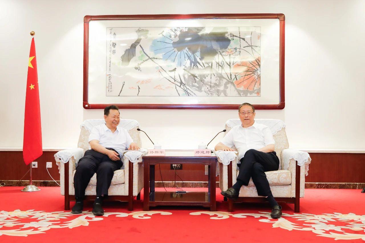 6月9日,全国人大常委会副委员长、民革中央主席郑建邦在民革中央机关会见中共北京市东城区委书记孙新军一行。民革中央副主席谷振春参加会见。