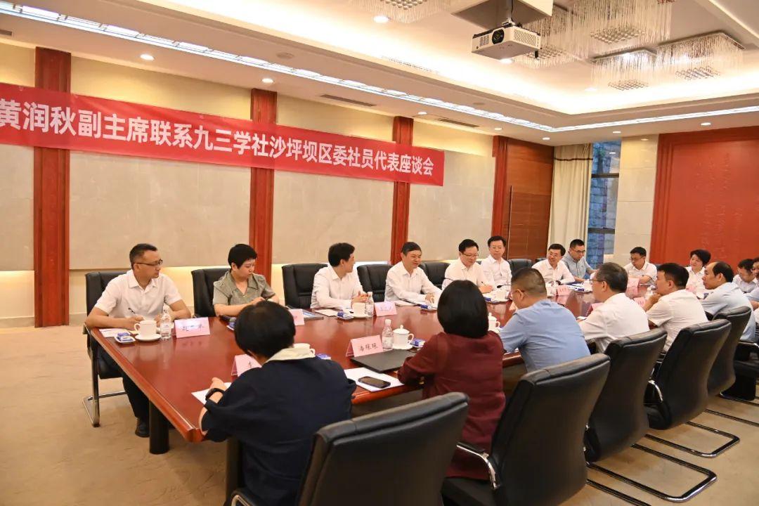 座谈会上,在听取社沙坪坝区委主委曾康所作的工作汇报和社员代表发言后,黄润秋对社沙坪坝区委的工作给予充分肯定。他希望社沙坪坝区委深入学习贯彻中共二十大和二十届三中全会精神,深入贯彻落实习近平总书记对各民主党派提出的殷切希望和新要求,将深入开展“学规定、强作风、树形象”主题教育作为当前工作的重中之重,提高政治站位,勇于担当作为,切实担负起新时代赋予的职责使命。一是加强思想政治建设,夯实共同思想政治基础。以社庆80周年为契机,加强社史教育,团结引领基层组织和广大社员赓续九三学社爱国、民主、科学优良传统,把坚持中国共产党的领导,坚持以习近平新时代中国特色社会主义思想为指导,贯穿于工作谋划推进的全过程、各环节,不断增进对中国共产党领导和中国特色社会主义的政治认同、思想认同、理论认同、情感认同。二是全面提升履职能力,为中国式现代化建设贡献力量。立足自身优势和特色,围绕实现高水平科技自立自强、成渝地区双城经济圈、西部陆海新通道、长江经济带高质量发展、推进共同富裕等国家重大战略,紧扣重庆市和沙坪坝区经济社会发展中心工作深入调研,多建睿智之言,多献务实之策。三是认真落实五年规划,不断提升自身建设水平。以《九三学社推进自身建设五年规划(2023-2027年)》为指引,结合实际扎实推进组织建设,为沙坪坝九三的组织发展和参政履职奠定坚实的人才基础;不断加强制度建设,进一步提升制度效能和机关工作能力水平;持续强化作风建设,树立九三学社社员严格自律、清正廉洁的良好形象。