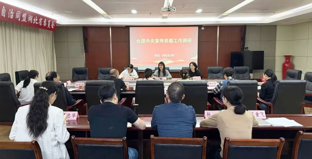 为进一步做好宣传思想工作,开展好纪念中国人民抗日战争暨世界反法西斯战争胜利80周年、台湾光复80周年系列活动,5月22日至23日,台盟中央宣传部副部长郭婷一行赴湖北开展宣传思想工作调研。台盟湖北省委会副主委罗强、童彦婷,台盟武汉市委会副主委李丹参加调研活动和座谈交流。