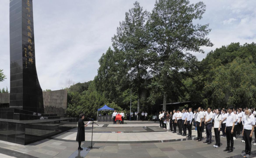 民革党员教育基地揭牌仪式在唐山市迁西喜峰口长城抗战遗址纪念碑举行。活动现场,全体人员首先向英烈默哀,敬献花篮并行注目礼。随后,谷振春、何秉群共同为民革党员教育基地揭牌。