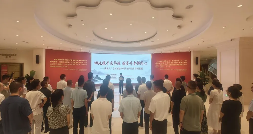 刘晓梅充分肯定了本次书画联展的意义和四地组织的精心筹备。她希望社各级组织和广大社员以庆祝九三学社创建80 周年为契机,赓续九三学社爱国民主科学优良传统,弘扬九三先贤的崇高精神,凝心聚力、团结奋进,为推进中国式现代化贡献智慧和力量。