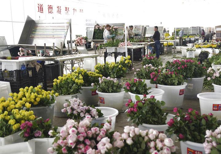 2025年3月24日,工人在云南丽江现代花卉产业园包装鲜花。新华社发(梁志强 摄)
