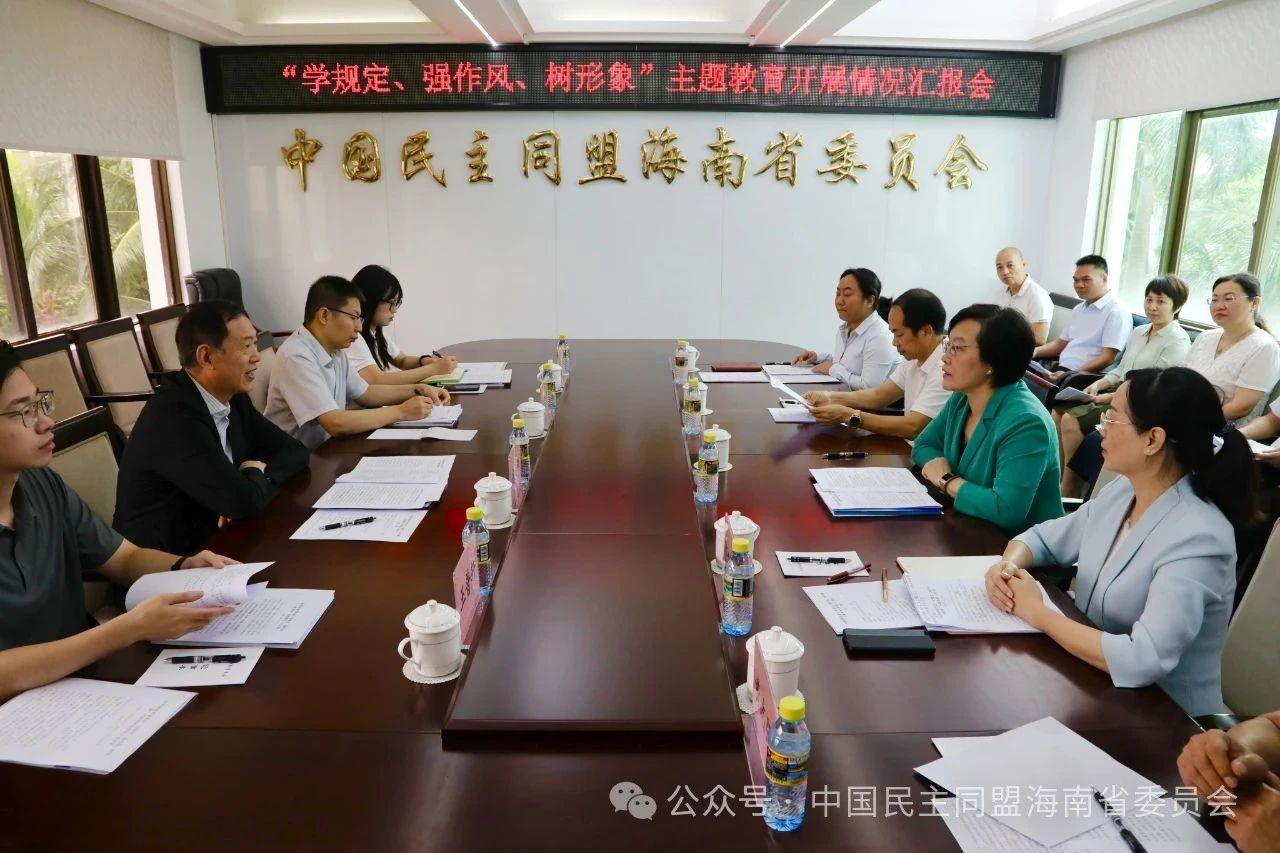 座谈会上,刘艳玲汇报了近期盟务工作开展情况,陈冬霞就海南民盟主题教育开展的整体情况进行了汇报,民盟海口、三亚、万宁市委会分别汇报了主题教育开展情况。