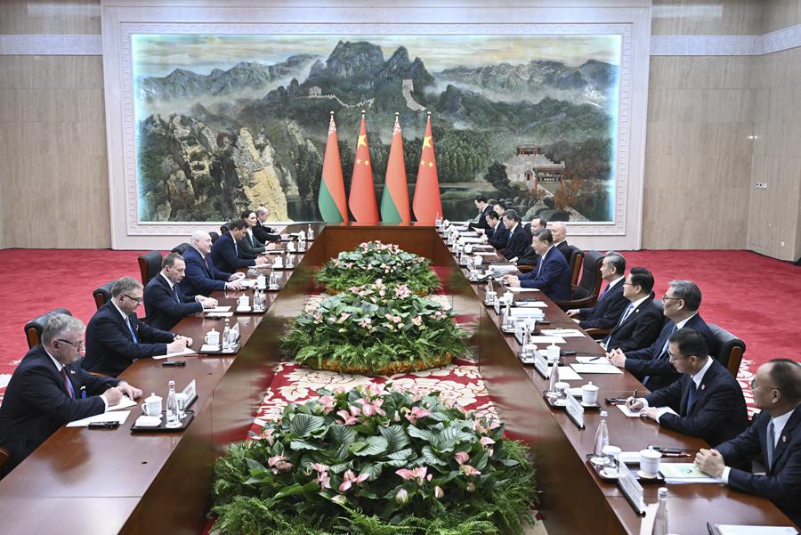 习近平指出,中国和白俄罗斯人民曾并肩战斗,共同为粉碎军国主义和法西斯主义作出重大贡献,结下深厚友谊。当前,世界百年变局加速演进,人类又一次站在十字路口。中方愿同白方担当时代责任,践行真正的多边主义,共同促进世界和平、发展、合作、共赢。