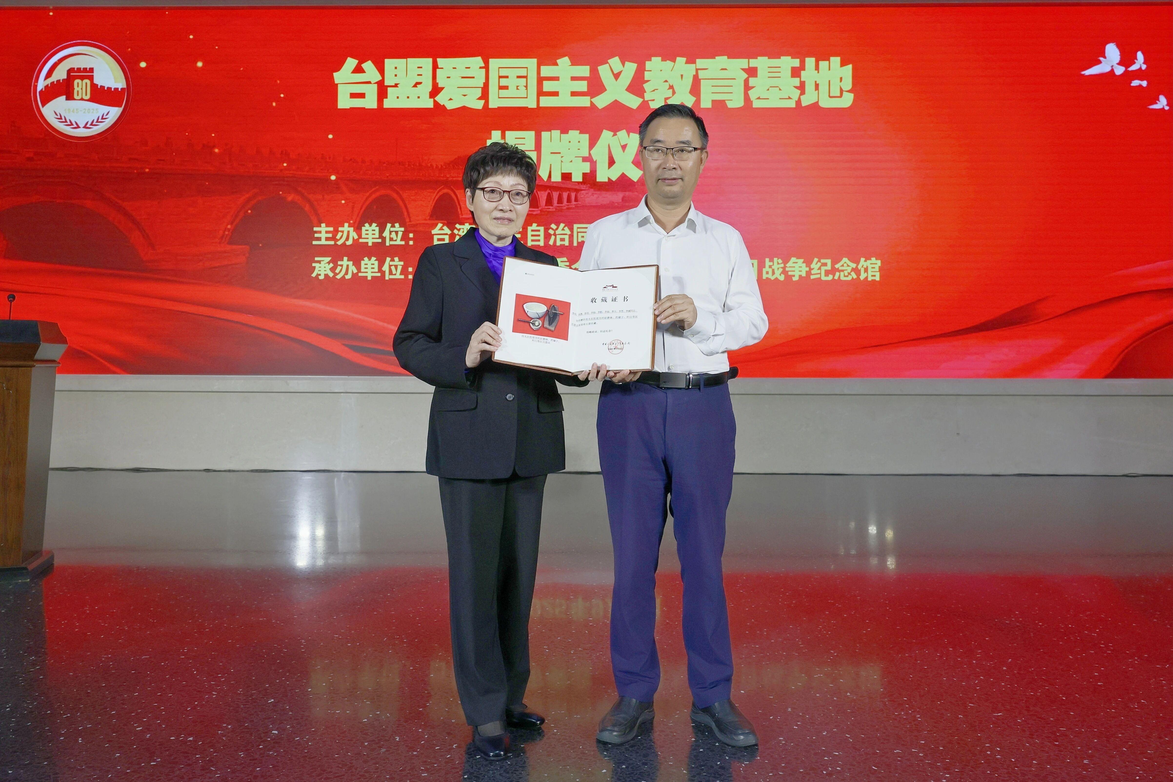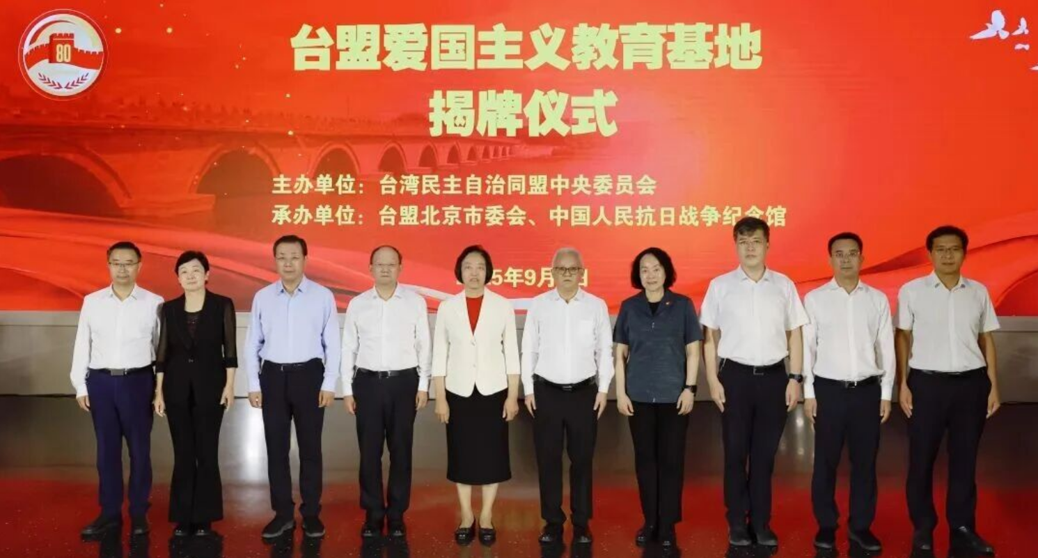 为弘扬伟大抗战精神,传承台湾同胞爱国爱乡的光荣传统,纪念中国人民抗日战争暨世界反法西斯战争胜利80周年,9月8日,台盟中央在中国人民抗日战争纪念馆举行“台盟爱国主义教育基地”揭牌仪式。