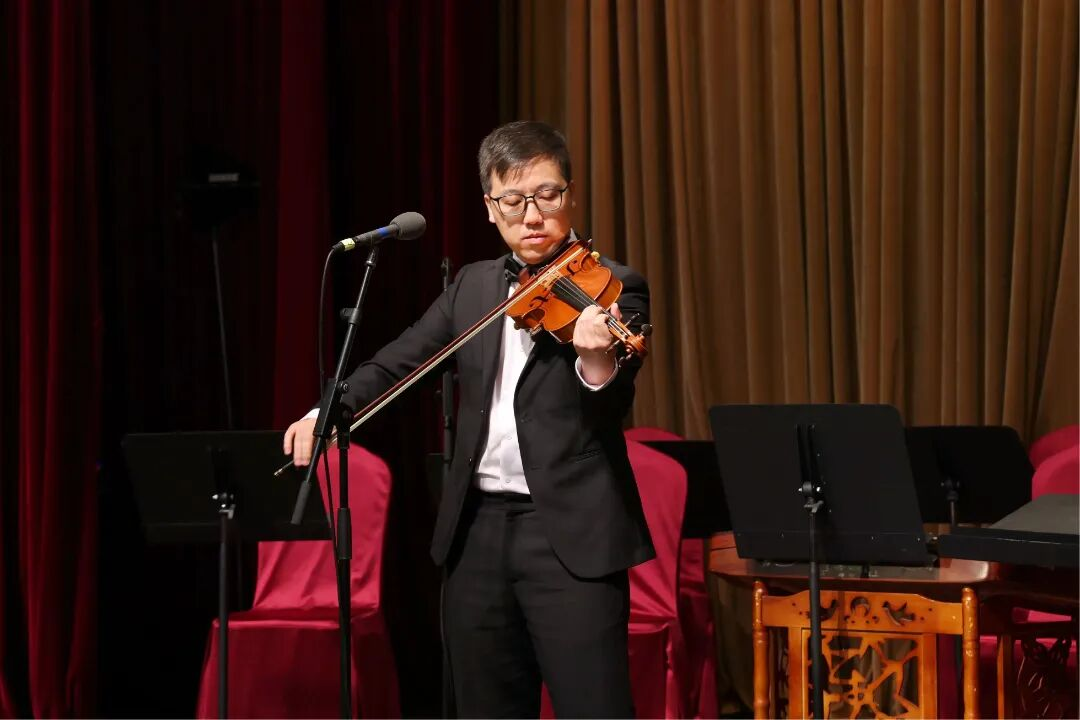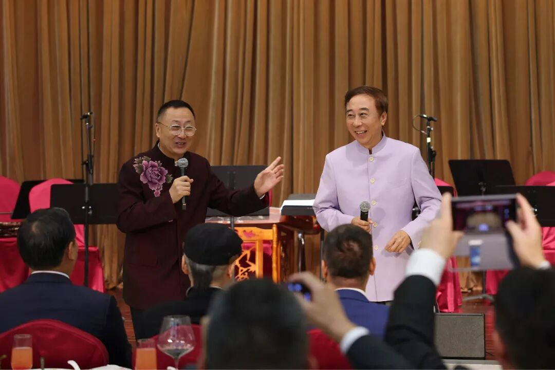 本次国庆招待会在中国广播民族乐团室内乐组合演奏的《花好月圆》《京味儿》中温馨启幕。演出节目精彩纷呈:周宇轩的女声独唱《今天是你的生日,中国》深情款款,贾旭明、郑健带来的相声《大话水浒》诙谐幽默,引得全场笑声连连;刘洺君高歌的《英雄赞歌》激荡人心,而由民革中央副主席、中国文联副主席、中国曲艺家协会主席冯巩领衔表演的相声节目《国庆快乐》更是将欢乐气氛推向高潮。随后,王奕戈演唱的京剧《家住安源》韵味悠长,在冯巩的京胡伴奏下赢得满堂喝彩。最后,招待会在台湾青年小提琴演奏家李佳颖深情演奏的小提琴曲《我和我的祖国》中圆满落幕,整场演出掌声不断,充满了共庆华诞的浓厚节日氛围。