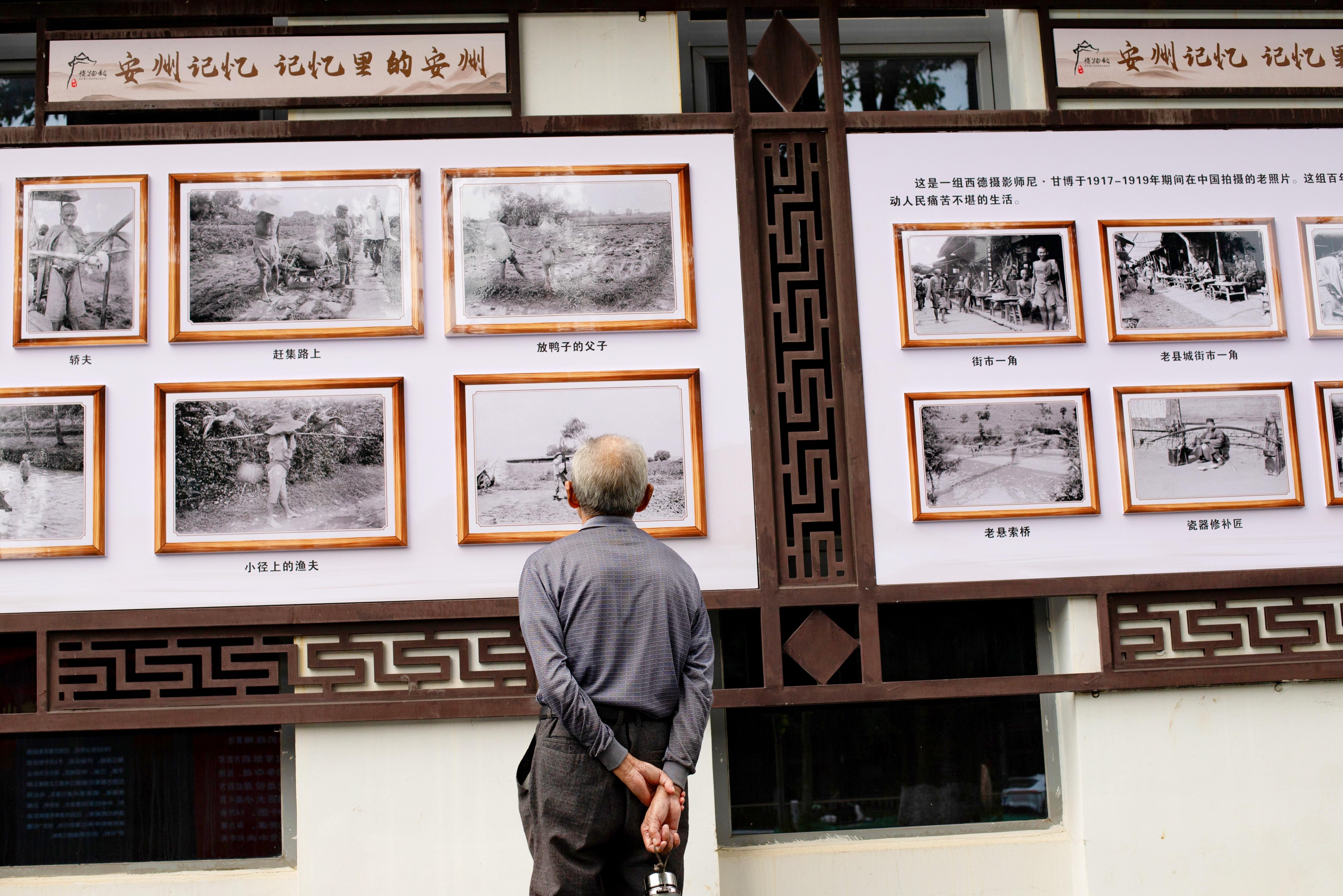 10月3日,市民在四川省绵阳市安州区观看历史图片展。九三学社社员 魏代龙 摄