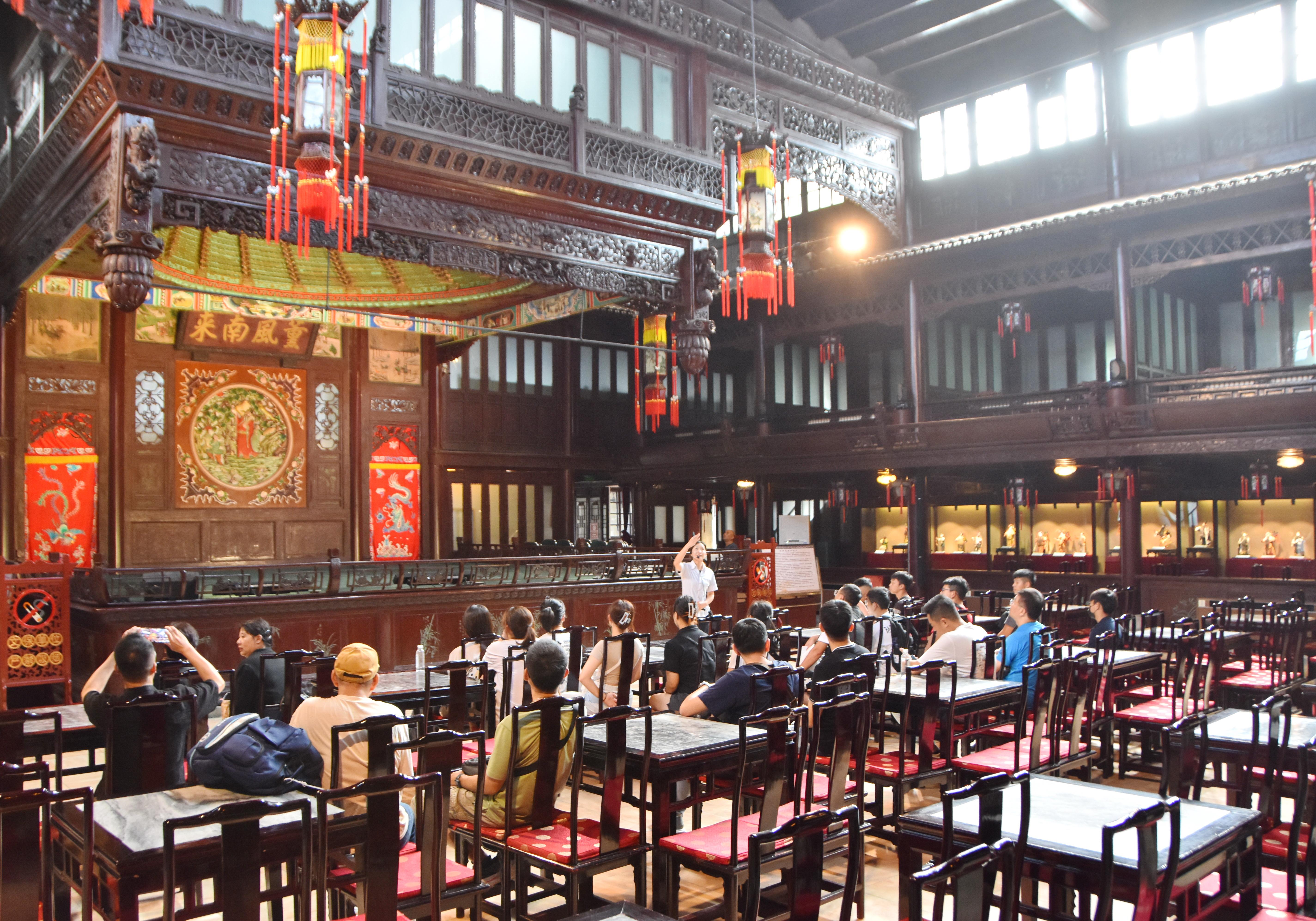 2024年逸阳文思第二届“海峡杯”青少年保龄球友谊赛于8月21至25日在天津市西青区举办。民革天津市委会作为协办单位,为了使台中市代表队成员更好的领略天津历史文化传承,在比赛期间,特意将参访点位安排在民革党员教育基地——天津戏剧博物馆(广东会馆)。参访团跟随讲解员,一路听,一路拍,沉浸式感受会馆的历史文化、建筑特色、文物遗存,体会艺术与文化的交融和华夏文明的魅力。博物馆的文创产品《天官赐福》彩色套版印章蕴含着吉祥的寓意,展现出中华传统文化的博大精深,吸引了参访团驻足购买。