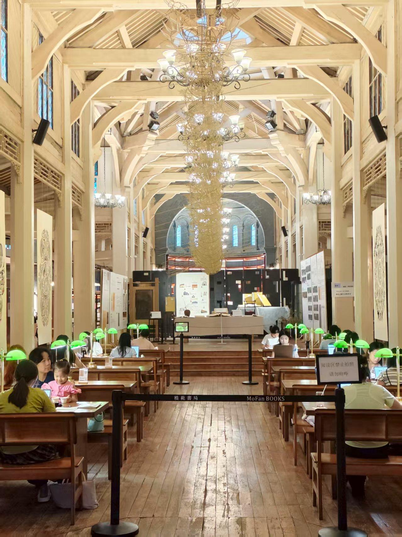 一些书店依托历史建筑的天然优势,同样在市场中脱颖而出,模范书局诗空间便是典型。模范书局诗空间位于北京市西城区,由110余年历史的中华圣公会教堂旧址改造,完整保留灰色砖墙、欧式穹顶等历史元素,原洗礼池成读书舞台,内侧设茶歇区。员工张女士称:“书局注重古典文史、诗歌、艺术类及作家签名书,许多书籍在主流网售平台难寻,50%用于收藏,30%介于收藏与畅销之间,20%是参考书及儿童书籍。”值得一提的是,店内不少人买饮品消费入座办公,沉浸于独特氛围。其文创产品别具匠心,与特色饮品一起,成为新的盈利增长点,助力书店在市场中拓展营收版图。