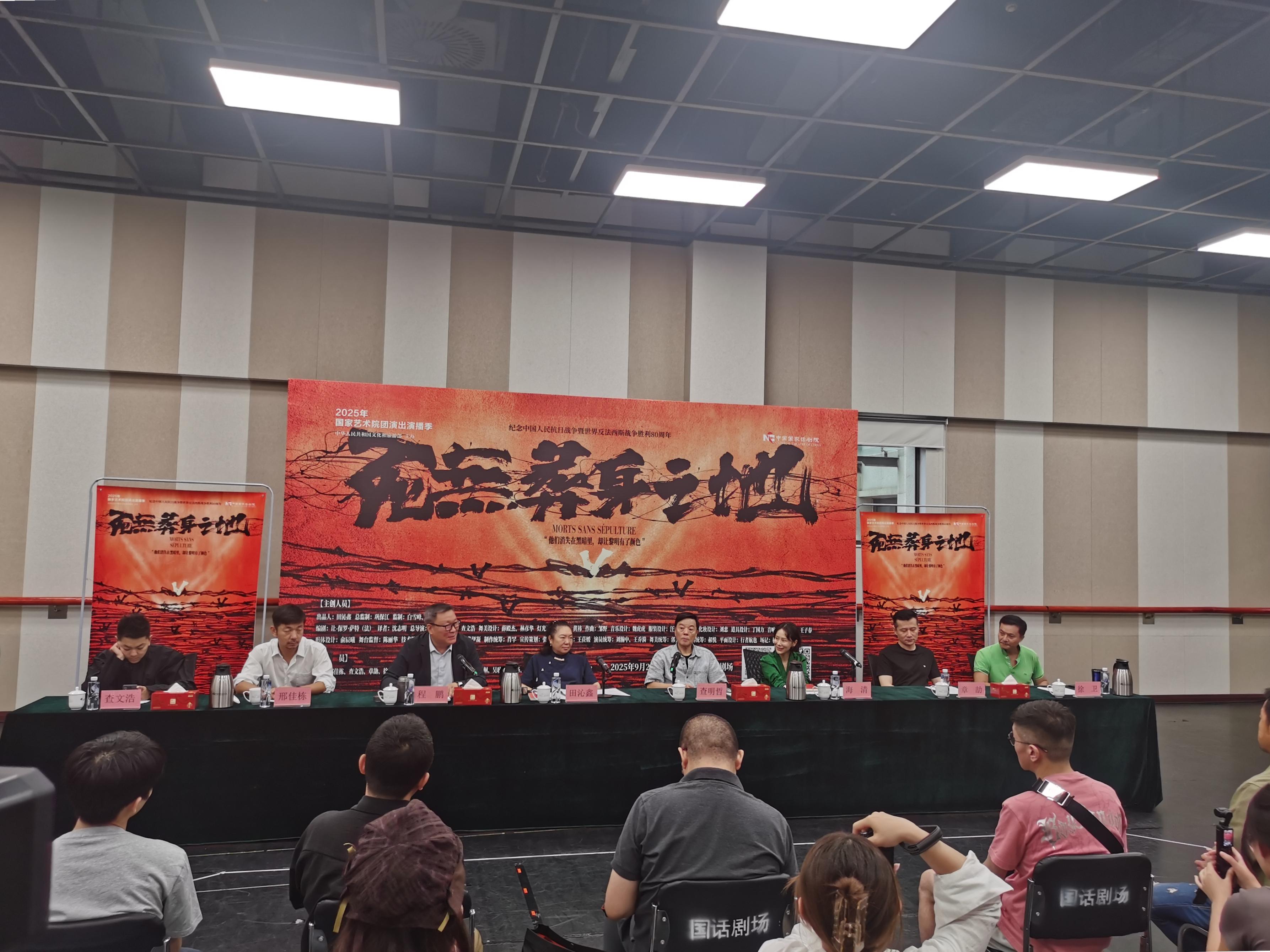 8月20日,中国国家话剧院为纪念中国人民抗日战争暨世界反法西斯战争胜利80周年而重排的经典剧目《死无葬身之地》在京举行新闻发布会。中国国家话剧院院长田沁鑫出席,中国国家话剧院副院长程鹏主持会议,该剧总导演查明哲及全体演员亮相,宣告这部经典剧目将以焕新阵容登陆国家话剧院剧场,向始终追求永不妥协自由意志与和平世界的人们献上诚挚礼赞。