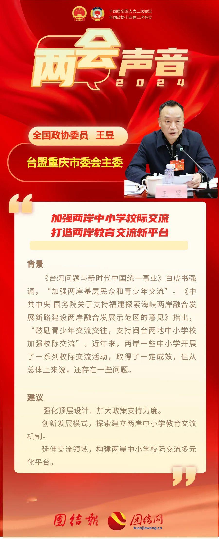 全国政协委员、台盟重庆市委会主委王昱:加强两岸中小学校际交流 打造两岸教育交流新平台