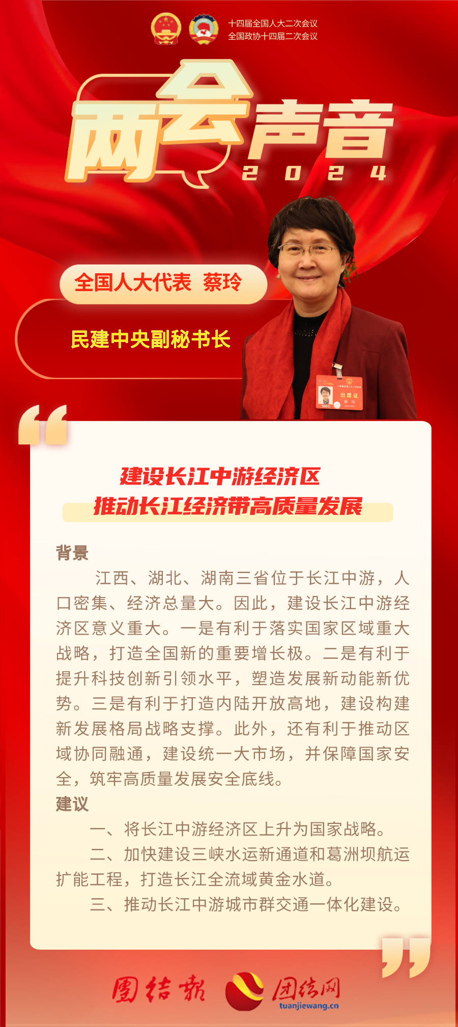 全国人大代表、民建中央副秘书长蔡玲:建设长江中游经济区 推动长江经济带高质量发展